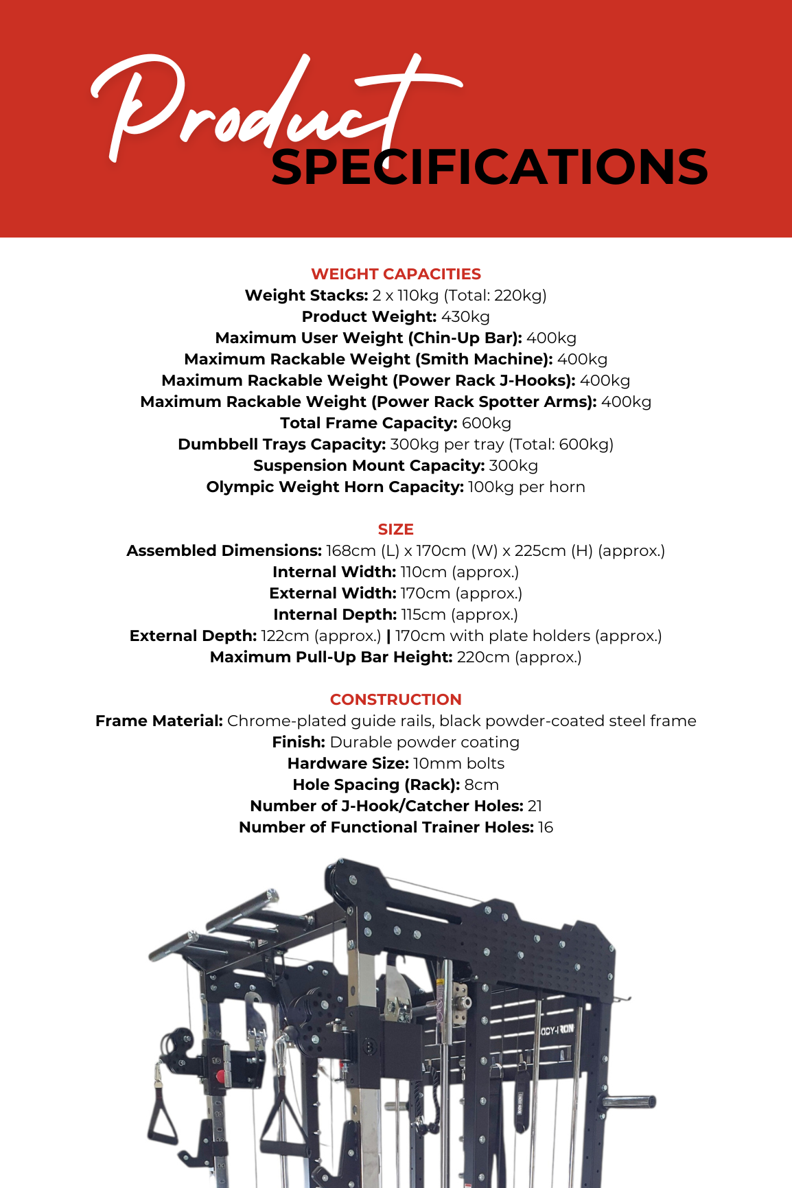 • All-in-one solution: functional trainer, Smith Machine and power rack combined.