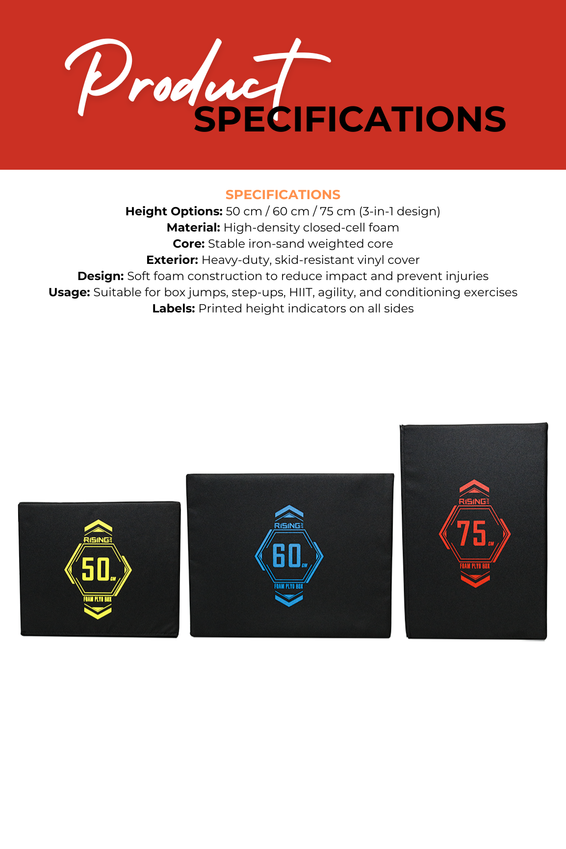3-in-1 Foam Plyometric Jump Box – Adjustable Heights: 50 / 60 / 75cm